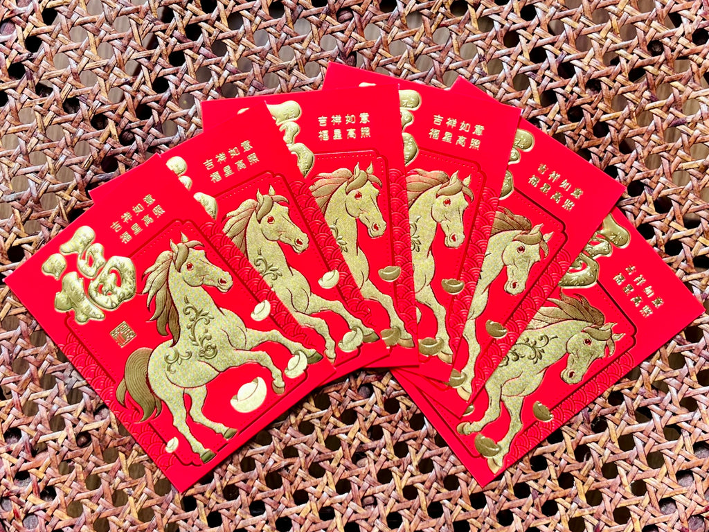 Embossed in gold on premium red paper, these horse red envelopes are perfect for gifting money or little trinkets to family and friends. Each design features the illustration of a powerful horse, along with a Lunar New Year blessing. Choose from the following designs:
