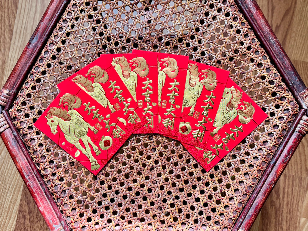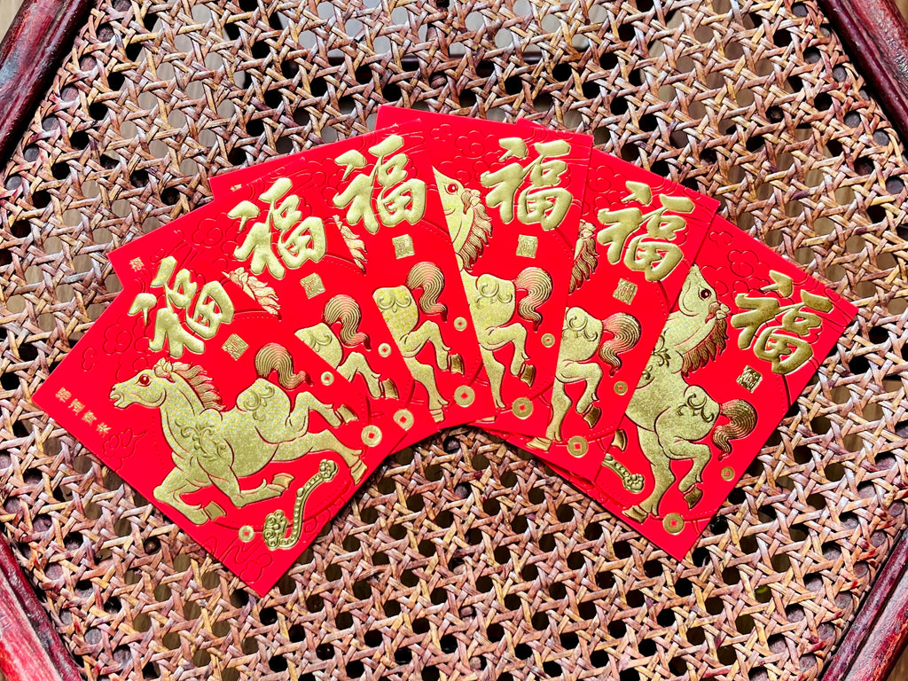 Year of the Horse Red Envelopes- Gold Embossed (Short)